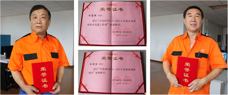 大连叉车公司结构车间大车架班班长孔宪发、生产管理中心管理员陈宝胜分别荣获“大连市2013-2014年度优秀班组长”、“大连市2013-2014年度企业班组建设先进工作者”荣誉称号!