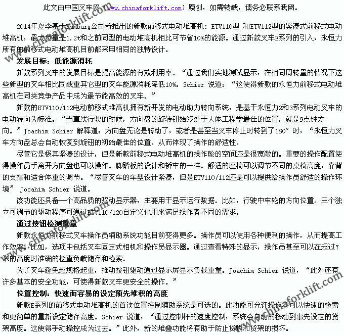 永恒力推出紧凑型前移式电动堆高机