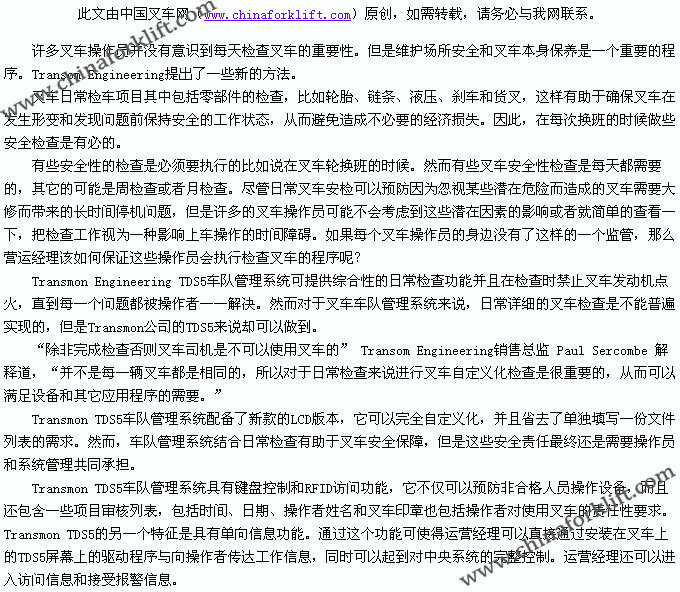Transom Engineering自定义保养系统辅助叉车车队管理
