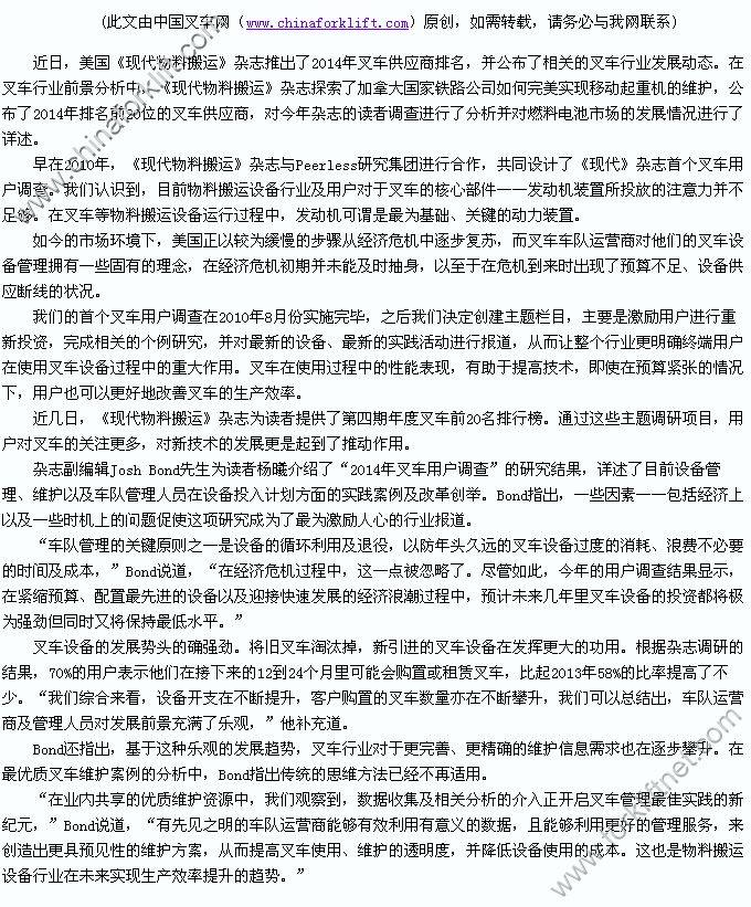 免责声明:中叉网(www.chinaforklift.com)尊重合法版权,反对侵权盗版。(凡是我网所转载之文章,文中所有文字内容和图片视频之知识产权均系原作者和机构所有。文章内容观点,与本网无关。如有需要删除,敬请来电商榷!)