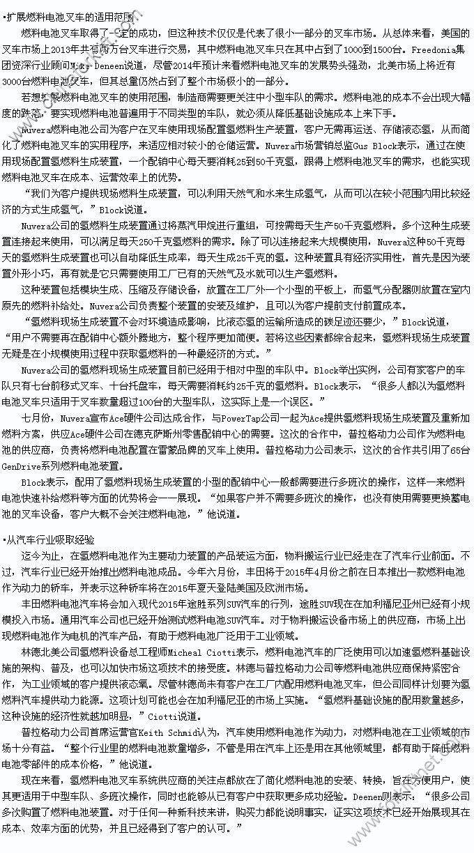 燃料电池叉车:市场发展潜力无限