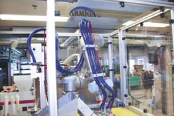 助听器制造商奥迪康采用UR5机械手臂来完成铸造车间各项不同的工作,而抽吸工具也被替换为可用于处理更为复杂的铸件的气动夹具。该六轴机器人的工作周期为4至7秒,可完成奥迪康传统两轴和三轴机器人无法实现的翻倒和倾斜操作。