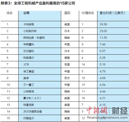 全球工程机械产业盈利最高的15家公司
