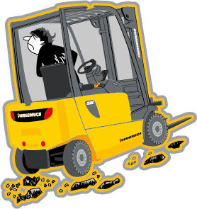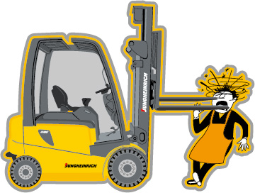 在有碎石、光滑或不平整的路面行驶需特别小心,以防叉车倾翻。