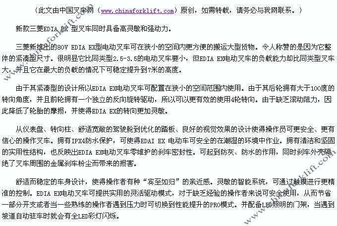 免责声明:中叉网(www.chinaforklift.com)尊重合法版权,反对侵权盗版。(凡是我网所转载之文章,文中所有文字内容和图片视频之知识产权均系原作者和机构所有。文章内容观点,与本网无关。如有需要删除,敬请来电商榷!)