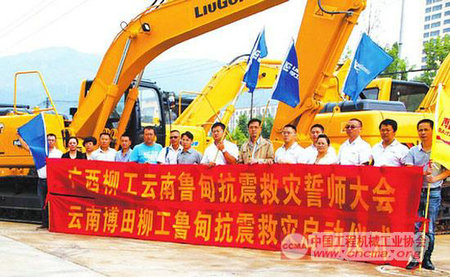 4日清晨,柳工总部高层领导指示驻云南办事处立即成立抗震救灾小组,以柳工云南办事处和经销商为主要力量,随时准备支援灾区救援。4日下午,柳工抗震救灾小组紧急从云南经销商各分公司,抽调优秀服务骨干人员及服务车辆,成立柳工机械应急服务小分队,服从政府统一安排,以最快速度修复设备,为抗震救灾提供有力设备保障。5日,柳工救灾人员物资已经全部到位。3台柳工挖掘机也在震中龙头山镇附近等待调遣。(柳州日报)