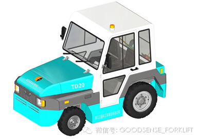 TD20牵引车以柴油发动机作为动力;传动系采用液力传动,自动变速;前后四轮液压行车制动,机械式驻车制动;液压助力式转向,由转向油泵驱动液压油作用于循环球式机械转向器;转向桥为纵向摆臂式独立悬架,采用螺旋弹簧加液压筒式减振器减振,驱动桥采用纵置板簧式非独立悬架,多片式钢板弹簧加液压筒式减振器减振。TD20牵引车动力强劲、性能卓越,结构紧凑、造型美观,具有操作简便、驾乘舒适、工作安全以及劳动强度低、作业效率高、维修率低等优点,能广泛运用于机场、港口、车站、库房等场所的牵引作业。