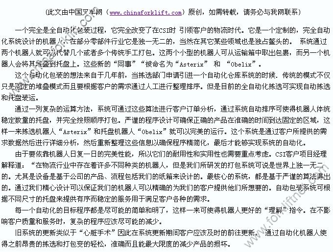 中国叉车网(www.chinaforklift.com)参考消息