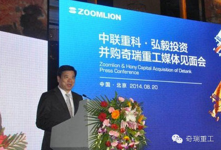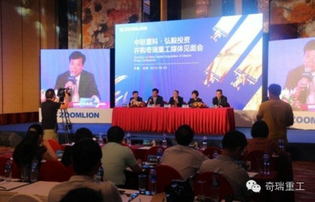 8月20日上午,中联重科、弘毅投资并购奇瑞重工媒体见面会在北京举行。