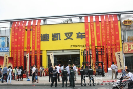 8月29日上午10点58分,成都新都区天回镇容都大道天回路,迪凯叉车成都美松品牌专营店开业庆典隆重举行。这是继8天前中联重科集团正式宣布并购奇瑞重工后,奇瑞重工旗下奇瑞迪凯重科安徽工业车辆有限公司在天府之国携手金牌代理商成都美松公司,在西南地区建立首家4S形象门店并召开核心代理商新产品品鉴暨年中答谢会。当日,来自全国各地上百位迪凯代理商、叉车用户以及成都美松高层连同行业媒体齐聚一堂,与该店全体员工共同见证了新店的开业,现场气氛十分热烈。中叉网应邀出席。
