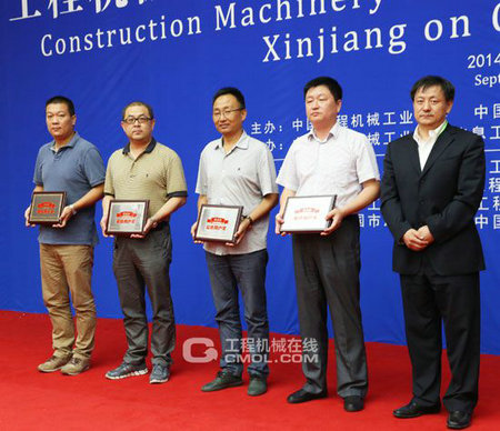 乌鲁木齐市市政设施管理处处长李俊为徐工集团用户颁奖,新疆海虹工程机械有限公司、阜康泰华煤焦化工有限公司、新疆伟业工程机械有限公司、新疆铭森挖掘机械有限公司获奖。