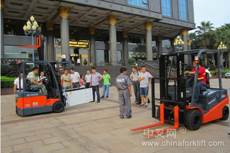 同一天,丰田叉车新品全国巡展——长沙站也在如火如荼的进行中。长沙站由丰田产业车辆(上海)有限公司,东莞金丰物流设备有限公司,湖南丰田叉车有限公司共同主办。以星沙为中心的长沙、株洲、湘潭、三市重点客户应邀参加了此次巡展交流会。主要分为会议和实车演示试驾两大部分,由湖南丰田叉车王雨林经理主持会议,丰田产业车辆(上海)有限公司企画室乔琳副主任做主题演讲,金丰杨艳玲经理作案例分析演讲及互动。在丰田叉车销售人员悉心说明下,嘉宾们对丰田的产品表现出浓厚的兴趣,客户提问互动并亲自试驾,现场气氛热烈活跃。
