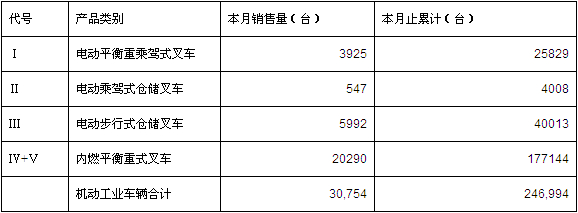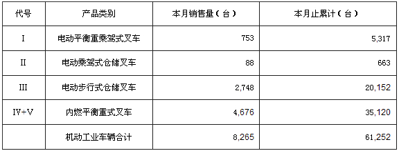2014年8月机动工业车辆总销售量: