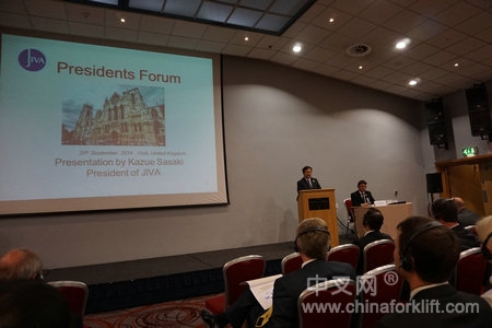 来自日本工业车辆协会主席佐佐木一衛(Kazue Sasaki)先生就“日本经济发展趋势和目前及未来叉车市场分析”在会上作了简单介绍。截止到2014年8月,日本经济处于中速恢复趋势,同时处于因提高消费税所带来的波动效应平静前的最后一刻的需求增加状态。预计2014年日本国内需求将提高10%左右,日本市场未来将主导氢和燃料电池,为了促进燃料电池叉车的普及率,政府将放宽政策。在2020年到2030年左右,以世界上最快的速度对车辆进行普及。【查看演讲稿】