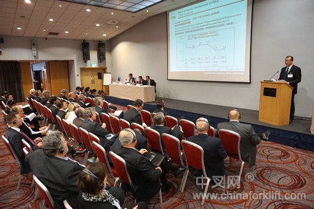 在主席论坛环节,会议先后听取了各位主席关于各国当前经济分析和本区域工业车辆发展形势的主题演讲报告。安徽合力董事长张德进代表中国工业车辆协会发表了主席论坛讲话,指出中国经济增长越来越趋于理性,中低速的增长将成为常态,追求持续、健康、平稳增长成为越来越多企业发展的主题。同时,结合中国工业车辆实际情况,具体阐述了当前中国叉车市场呈现出的一些新特点,并展望未来市场发展趋势。