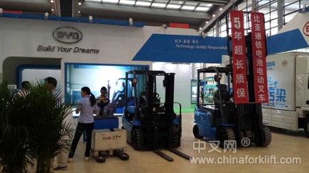 电动叉车,5年超长质保”的条幅,让客户购买比亚迪叉车不只是体验零污染、零排放、高安全的电动叉车,更是为质保做出了承诺。