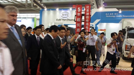 在本次展会上,深圳市委书记王荣,市长许勤及参加本次开幕式的发改委等领导视察比亚迪展台,这是对比亚迪绿色产业在创新方面取得的成绩的肯定。