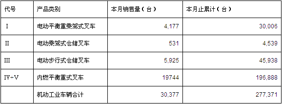本数据根据世界工业车辆统计协会分类。数据来源于中国工程机械工业协会工业车辆分会月度统计报表,如转载,请注明出处。