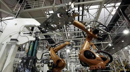 2014年德国汉诺威国际工业博览会西门子公司的展台前人头攒动:一条代表“未来制造”的汽车生产线抓住了参观者的眼球。两台库卡机器人正完美配合,装配大众高尔夫7系轿车的车门。 这些机器人不仅具备娴熟的装配技艺,它们还懂得彼此沟通——如果前一台机器人提高速度,它会提前通知后一台机器人做好准备;它们甚至还能灵活变换工作任务,几分钟前还在安装车门,几分钟后就可能开始另一项新任务,比如安装方向盘,甚至喷涂油漆。