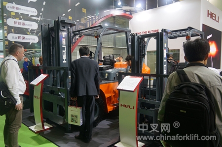 作为中国叉车军团的排头兵,已连续23年在中国市场叉车产销量排名第一的安徽叉车集团有限责任公司携全系列叉车产品领衔国产品牌,以强大阵容盛装参展,向国内、国际同行展示了最新产品。本次展会上,安徽合力展出的产品包含:G系列和新H系列内燃叉车、高性能锂电池叉车以及环保节能的电动仓储车等。