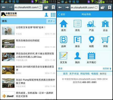 为方便广大移动电子用户更便捷浏览中叉网,近日我们开通了手机版,网址是:m.chinaforklift.com,包括首页、资讯、产品、企业、品牌、展会、求购、会员中心等栏目。中叉网的微信公众平台资讯也链接到中叉网手机版。