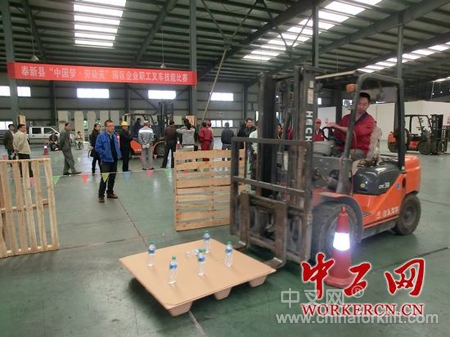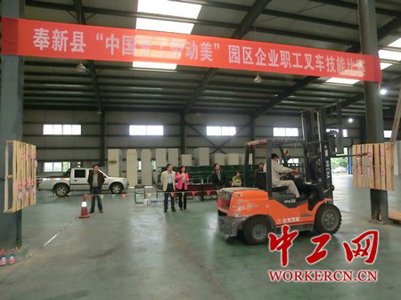 为深化“中国梦·劳动美”主题宣传活动,进一步推动“当好主力军、建功十二五”劳动竞赛活动深入开展,激发职工“学技术、比技能、创一流”的热情,提高职工技能水平,立足岗位成才,11月1日,江西省宜春市奉新县总工会在大华云通玻纤有限公司成品仓库举办园区企业职工叉车操作技能比赛,经过预赛,来自工业园区规模以上企业的23个代表队56名选手参加了“S”型障碍行走和叉摘“苹果”2个项目的比赛。