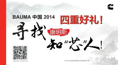 11月25-28日,康明斯会在BAUMA 中国 2014展会室外C72展台上,重点展示康明斯宽广的非公路用动力产品线,以及为挖掘机、装载机、叉车量身定制的专属动力系列,同时展示满足当今最为严格排放标准的非公路第四阶段(EPA Tier 4 Final/EU Stage IV)电控发动机,展品广泛覆盖QSF 2.8 升至 QSK 60 升 (46-3150 马力) 发动机及零部件等。在康明斯展台,观众们可以体验到康明斯设计、整合和生产发动机核心技术的能力,近距离感受康明斯发动机集精湛、强悍于一身的现代科技之美。