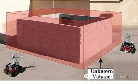 当机器人环绕正方形混凝土建筑物时,彼此离开视线范围之内,它们能够计算出建筑物内部的事物,甚至可以识别出人类。其工作原理是当途经墙壁和其它物体时,测量信号强度的衰减程度。