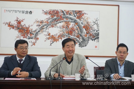 会议当天的上午9:10,在五河县政府会议厅,中国叉车后市场联合会会长赵已铭先生就“2014年的工作报告和2015年的工作计划”向现场嘉宾进行了讲解。对于在安徽五河县选址建设工业园的原因,赵会长表示,在这几年里,中叉联领导带领多家会员企业,先后考察江西、江苏、安徽等多个县市,经过反复比较、慎重考虑,最后决定在安徽省蚌埠市五河县城南工业区创建叉车产业园。经过近一年的前期准备和反复磋商,于2014年1月20日与五河县人民政府正式签订了《中国叉车产业园投资协议书》,并按期交纳了项目保证金。在安徽五河投资建设产业园的目的是把国内零散的配件商整合到一起,形成彼此相互合作的叉车配件供应链,最终实现互利共赢。通过一个、两个乃至多个产业园的建立,形成良好的示范效应,从而推动未来整个叉车事业的发展。