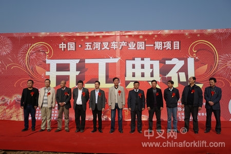会议首先请五河县马县长致欢迎词,马县长对中国叉车后市场2014年年会在五河县召开表示热烈祝贺,并向与会代表介绍了五河县发展形势,欢迎叉车行业的朋友到五河县发展投资。随后,联合会赵己铭会长就联合会2014年工作及明年的工作设想向大会作了发言,赵会长详细介绍了中国叉车后市场联合会在安徽五河县选址筹建中国五河叉车产业园项目经过、现状及前景,并希望叉车后市场企业关注和参与中国五河叉车产业园项目的建设和投资。赵会长讲话后全体与会代表驱车前往五河县经济开发区参加中国五河叉车产业园项目开工典礼,参加开工典礼的还有五和县委、县政府、县人大、县政协有关领导及相关部门的负责人约100多人。开工典礼隆重而热烈,在一片热烈的掌声及鞭炮声中中国叉车后市场联合会及五河县领导为叉车产业园项目进行了剪彩和奠基。