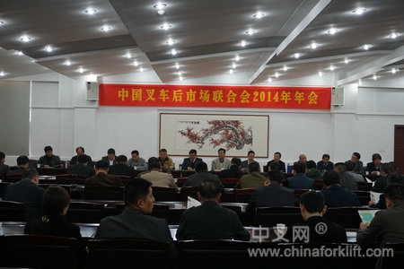 中国叉车后市场联合会2014年年会于2014年11月21日在安徽省五河县银凯大酒店召开。参加会议的有各会员单位及从事叉车后市场业务的相关企业代表共计60多人,安徽省五河县县委、县政府有关领导也参加了会议。