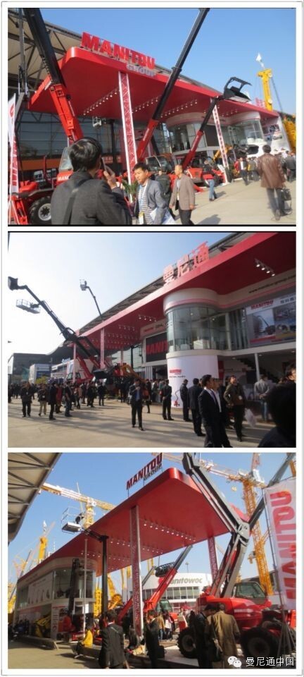 位于靠近观众入口的A09曼尼通红色展台气势恢宏,特别引人注目。此次展会曼尼通共展出了8款建筑行业的明星产品,包括伸缩臂叉装车3款MRT-X1840,MT-X1740, MT-X 732;高空作业平台3款:柴油曲臂式200ATJ,电动曲臂式170AETJ L,电动桅杆式100VJR;滑移装载机2款:Mustang 2600R 和Gehl V400。