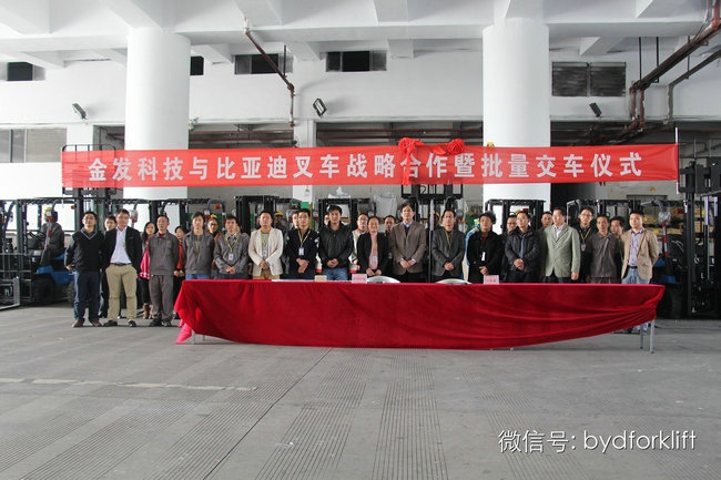2014年,是比亚迪叉车收获颇丰,展翅腾飞的一年。在飞跃的的最后一段旅程,我们依然保持着蓬勃的气势,顺利达成了年尾的又一次大单。12月11日,金发科技股份有限公司与韶关比亚迪实业有限公司在广州科学城科丰路33号金发科技园区内举行了比亚迪叉车批量交车暨战略合作签约仪式。此次仪式受到了双方一致的高度重视,作为至诚合作伙伴,金发表现了对比亚迪叉车的高度热情,比亚迪叉车也用过硬的品质证明了对金发的承诺与责任。