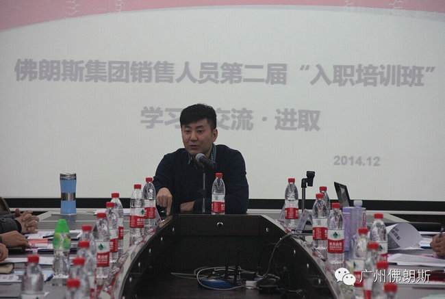 2014年12月16日上午,佛朗斯集团销售人员第二届入职培训班于集团总部一楼多功能会议室召开,出席本次会议的成员有集团总经理侯泽兵,国内事业中心常务副总监杨自云,国内事业中心运营部部长朱黎,国内事业中心销售担当昝菊华以及来自各分公司新入职的25位成员,此次培训日程为期八天。