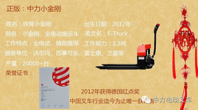 湖州市首次评选工业十大创新成果,成果涵盖了四个方面的创新类型,集中体现了湖州市工业创新的成效。其中国际先进级的创新成果2项,国内领先类的创新成果4项,具有行业特色和地方特色的创新成果4项。浙江中力机械有限公司“适用于狭小通道的1.5吨超小型轻量化电动搬运车”成功入选了产品创新类成果,这是经过行业部门初审、省市专家联合评审、广泛征询300余名人大代表、政协委员及企业家意见之后评定的,是对我司技术创新的极大肯定。