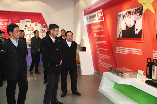 图为吴水霖一行在天能文化展厅参观