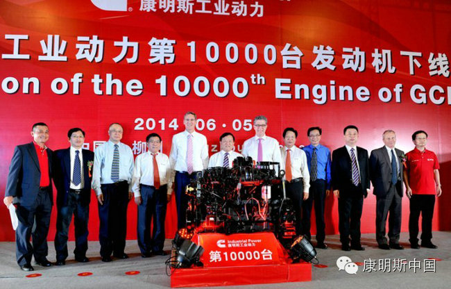 2014年6月5日,广西康明斯工业动力有限公司迎来第10000台发动机的成功下线。广西康明斯是康明斯在华第一家工程机械发动机生产基地,是康明斯针对非公路市场加大投入、着力开拓主流市场的一项重要举措,也是康明斯在华合资合作的又一个里程碑。广西康明斯生产的两款工程机械专属发动机,为柳工机械提供了可靠高效的理想动力。为中国和国际工程机械市场输送更具竞争优势的产品,为广大用户提高生产效率、节油降耗作出积极贡献。