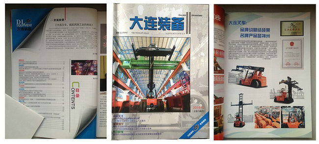 近期,在由大连市机械行业协会主办发行的业内杂志《大连装备》中,大连叉车有限责任公司压轴登场,出现在该杂志2014年末版的封面上。《大连装备》以“大连叉车:品牌战略结硕果,名牌产品誉神州”和“大连叉车,挺起民族工业的脊梁”为题,在刊内头版对大连叉车进行了专题报道。