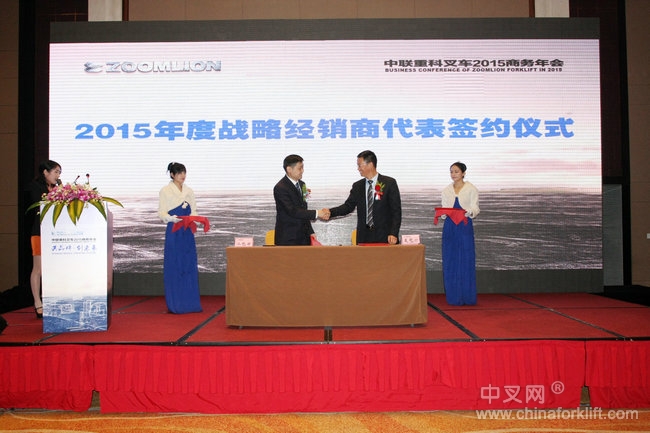 大会还对2014年度战略经销商、优秀经销商及供应商进行了表彰,针对2014年度战略经销商兑现了商务政策大奖,并与经销商代表签订了2015年战略合作协议,巩固与发展了经销商、供应商等合作伙伴的战略联盟关系,展现了中联重科工业车辆公司与合作伙伴诚信合作,共创共赢的信念与决心,为未来的市场开拓积蓄了强大的发展动力。