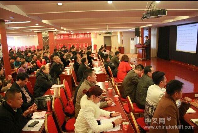 江汽集团公司副总裁王志远发表了热情洋溢的重要讲话,他从经济发展“新常态”的九大趋势、八大更加关注、五项主要任务等三个方面对2015年的行业经济进行了论断。他回顾了2014年高开低走的叉车行业发展态势和江淮重工在2014年的发展亮点,对经销商朋友们的支持表示感谢,并对经销商朋友们提出了“坚定必胜信念,积极探索创新营销模式,真正强化客户意识,不断宣传重工产品,引导客户调整结构,保持与重工的交流沟通”的要求。