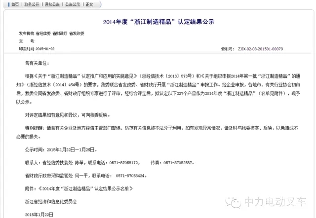 就以高性能工程机械与智能物流装备的身份入选了2014年度“浙江制造精品”。