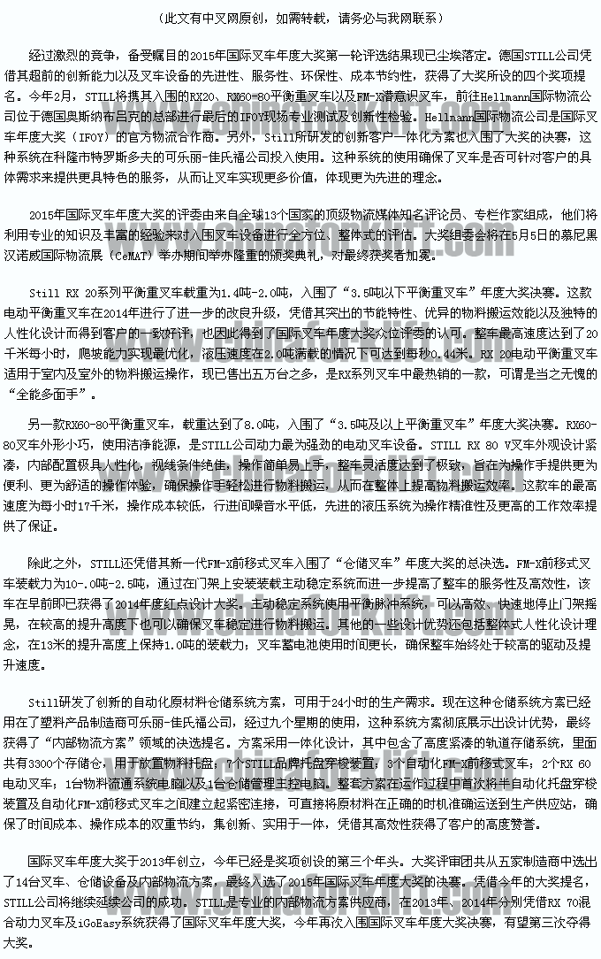 自1920年Hans Still创建公司,STILL持续发展成为物流部门最具创新力的产品、服务全方位供应商之一。STILL拥有6000多名雇员,为全球客户提供高效率的产品、熟练快捷的服务。Still中国代理商:伟轮叉车
