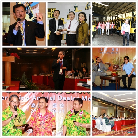 1月29日,会议第二天,成功案例分享会以访谈的形式在曼谷某五星酒店会议厅里进行,来自七家经销商代表与大家分享了在2014年取得的一些成功客户案例经验,包括,北京经销商在某重点客户的培育和维护的成功案例,香港经销商与我们分享了某超市批量采购60台B60仓储类叉车的大订单案例;重庆经销商分享与某汽车公司签订的20台LO5.0新品牵引车的经验;宁波经销商则分享了与塑料生产商22台H3.00DX三吨内燃车的租赁合作案例。另外,武汉经销商在售后市场的成功经验也毫不保留地与参会代表共同探讨,以及刚成立一年左右的新的经销商如何在短期内获得骄人业绩等等过这些宝贵的案例经验分享帮助经销商也打开了一些发展思路,给大家带来更多借鉴和思考。