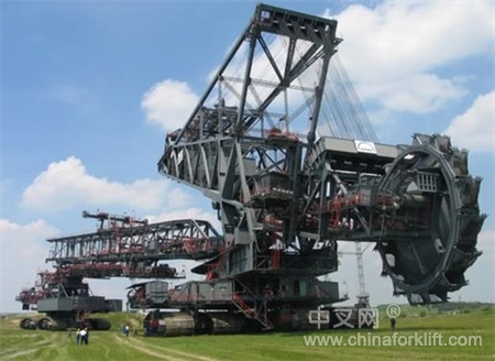 7 最重自行式工程机械——14210吨克虏伯Bagger 293这是由德国克虏伯Krupp出品的世界上最大挖掘机,没有比Bagger293更庞大的物体了:96米高(相当于30层楼),240米长,49米宽,14210吨重,它是德国哥兹维勒露天煤矿的一台挖掘机,其装备20个8.6立方米铲斗,总装机容量2万千瓦,轮斗驱动采用3台1680千瓦电机,总功率5040千瓦(6600马力)。它是德国哥兹维勒露天煤矿的一台挖掘机。只需一天,这个大家伙就能挖出24万立方米土,足够填满10个奥林匹克标准的游泳池。曾有一次一辆80吨的推土机不幸被挖起并塞到了轮斗轴承里,可见它的力量之大。其移动速度最大为600m/h,制造费用达到1亿美元。