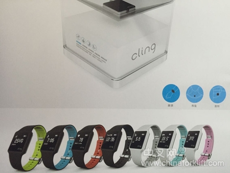 Cling 这款具有传感功能的智能产品具备24小时监测心率、体温变化、运动热量、运动距离、来电提醒、天气预报等多项功能。款型包括:腕表、吊坠和别针,需要跟智能手机配对才能完成以上的功能。