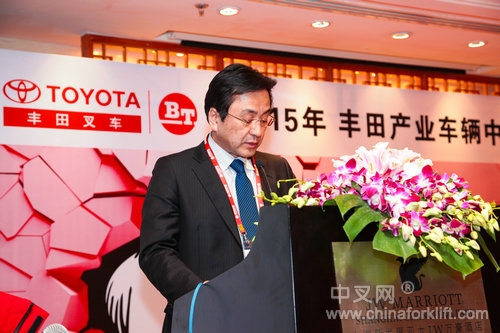 6日会议在日本丰田自动织机大西取缔役的代表致辞中拉开帷幕。大西取缔役首先回顾了2014年全球叉车市场,全球市场较前年增长7%,其中欧洲、中国的增长显著。在丰田叉车的销售方面,2014年丰田产业车辆集团销量再次领跑全球,市场占有率达到21.2%,创出新高。与此同时,大西取缔役还对中国未来的电动叉车发展趋势表示乐观的态度,根据欧洲和日本目前电动叉车的构成比预计,未来中国电动叉车的比例还有很大的上升空间。同时他还指出,中国市场在全球叉车市场中占有举足轻重的地位,期待丰田叉车在中国的销售表现能在整个集团实现其全球远景目标的过程中做出应有的贡献。来自丰田工业(昆山)有限公司的加藤总经理也在随后的致辞中表示作为丰田产业车辆集团全球主要生产基地之一,已经完成了能够对接全球市场需求的产能扩充和品质接轨,期待未来物超所值的丰田叉车能够走进更多中国客户的使用现场。来自丰田物料搬运国际的市场销售总监Peter Bredin先生针对以BT和Raymond品牌为核心的仓储车销售状况和预测进行了发言,表达了与中国经销商一起共同开拓这一市场的决心。