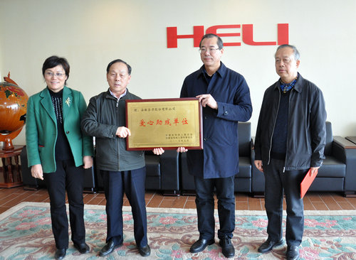 2月11日上午,温暖明媚的冬日骄阳,给合力工业园披上一层光辉,原安徽省政协副主席秦德文、原安徽省信息化厅厅长贺凌、安徽省残联副理事长赵卫弘、安徽省国资委群工处处长刘峰一行8人莅临安徽合力,代表省残联、省残疾人福利基金会授予安徽合力“爱心助残单位”荣誉称号,并送来牌匾;集团公司党委书记、董事长张德进在集团办、证券部、政治处等相关负责人的陪同下对来宾给予热情接待。