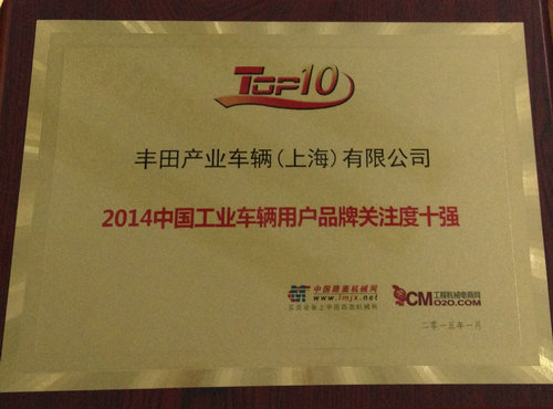 新年伊始,2014年中国工程机械网及工程机械电商网联合主办的“2014中国工程机械用户品牌关注度排行榜”发布,经过客观公正的评选,丰田叉车荣膺“中国工业车辆用户品牌关注度十强”。