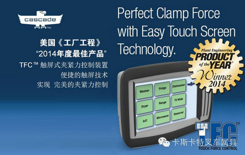 卡斯卡特很高兴地宣布夹紧力控制系统系列新产品之一的TFCTM - 触屏式夹紧力控制装置获评美国《工厂工程》“2014年度最佳产品”。