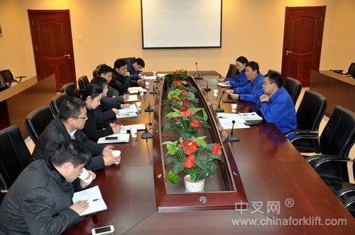 上午9点,孙余洲副主任一行冒着雨轻车简从的来到合力工业园,双方在研发楼视频会议室进行座谈交流。薛白总经理首先对经开区管委会长期以来给予合力的支持与帮助表示了诚挚的感谢,并就2014年公司生产经营、投资情况,以及2015年主要工作向来宾做了简要的介绍。此外,薛总还就新常态下工业车辆行业发展走势,合力技术、产品、装备等方面更新升级,结合生产型服务业发展着力延伸产业链战略以及提请经开区协调解决事项等方面的问题与孙主任一行进行深入交流和探讨。